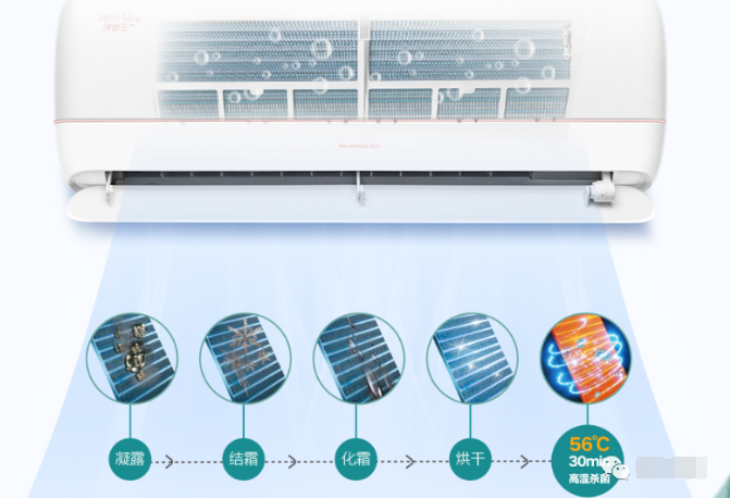 一、每季剛使用空調的前幾天,嗓子都會不由自主地干咳、不舒服。雖然空調過濾網已經清洗過了,但是蒸發器里還是會有累積的細小灰塵和細菌。格力空調有56℃凈菌自潔蒸發器的功能,通過制冷系統的凝露除塵、結霜除漬、化霜沖洗、加熱烘干、高溫消殺這五個步驟,可以讓空調更干凈,讓家人更健康。(小編偷偷地告訴你,如果有室外機自潔的功能就更好啦!)